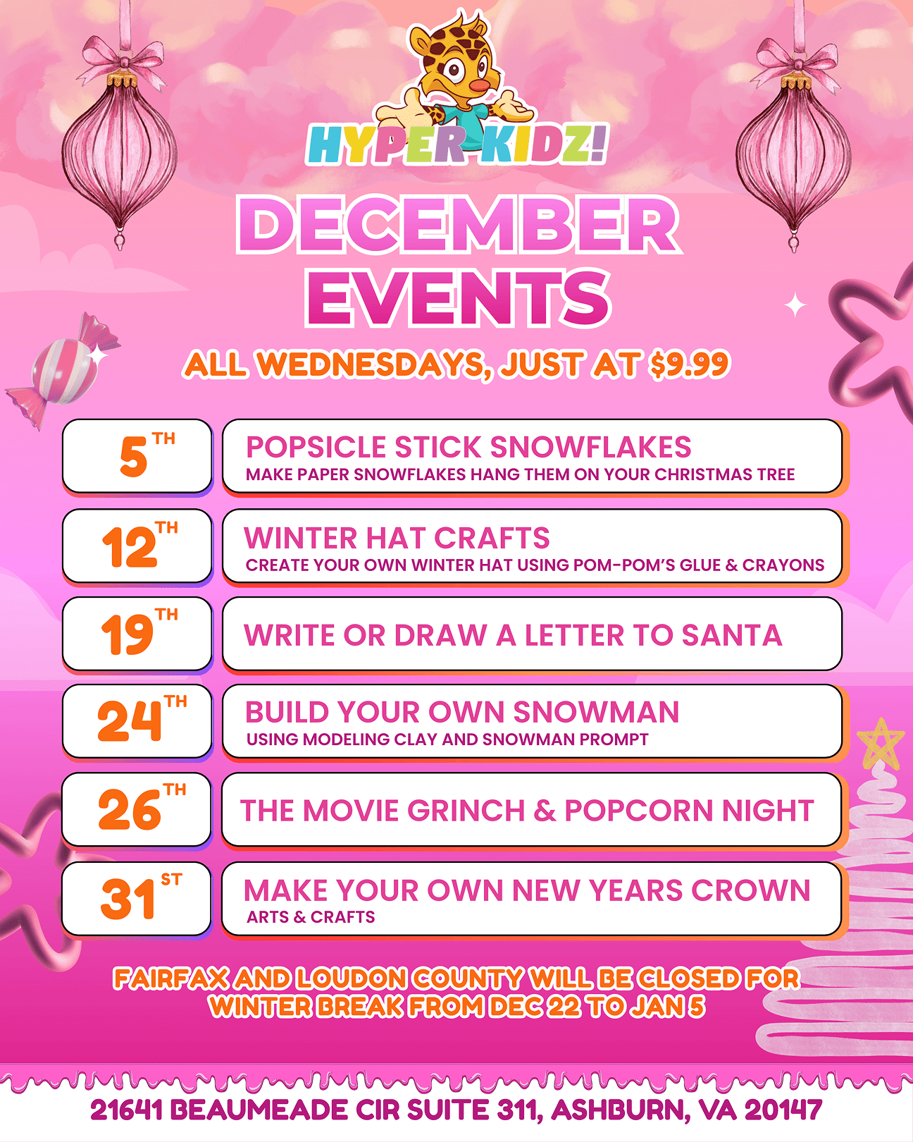 Attractions include an interactive LED dance floor, giant pin screens, and multi-level play structures. Hyper Kidz encourages healthy and active social play. Therefore, we do not offer video games, coin-operated games, or arcade games.